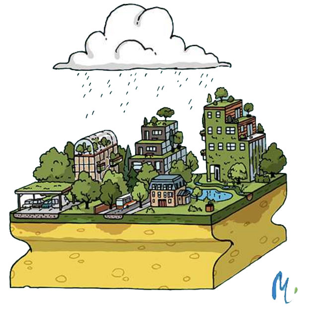 l’importante imperméabilisation de nos villes et les événements météorologiques de plus en plus extrêmes ne sont pas sans conséquences sur notre quotidien. Cela provoque de nombreux problèmes tels que des inondations, la pollution des rivières, des îlots de chaleur urbains ou des sécheresses.